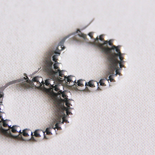 Edelstalen oorringen met 3 zoetwaterparels en blokjes - goud