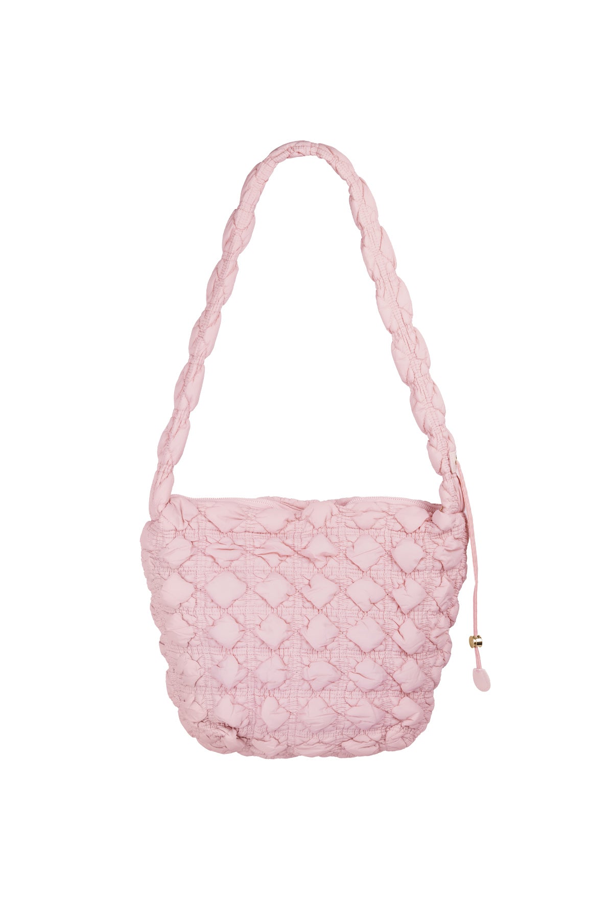 Hoe schattig is deze handtas die lijkt op een wolkje? De tas is poofy en maakt jouw voorkomen nog net iets schattiger. Naast het schattige karakter kan je ook heel veel kwijt in de tas. De tas heeft de volgende afmetingen: 35 bij 27 bij 10 centimeter. Het materiaal is 95% polyester & 5% metaal.