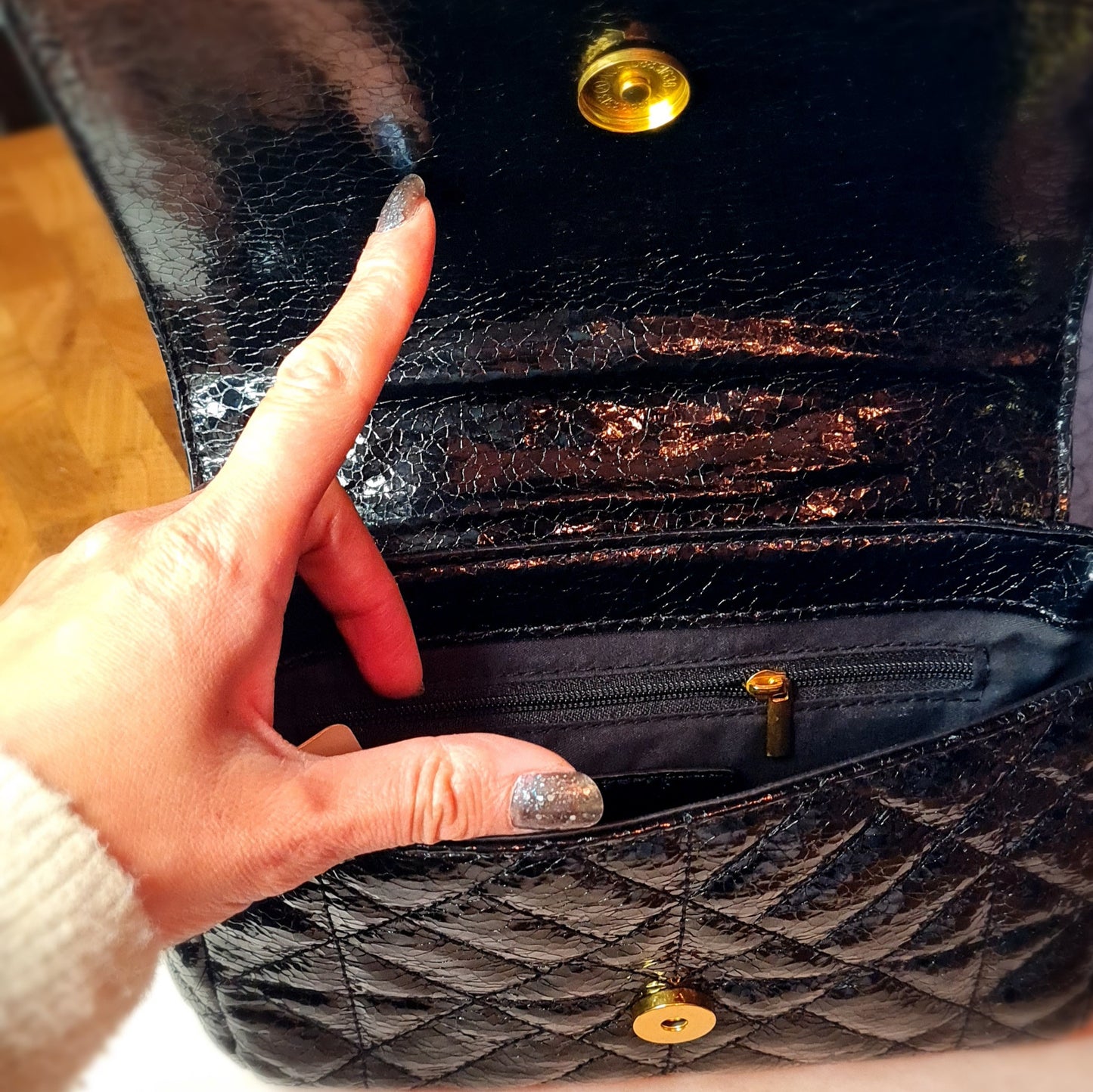 De tas wordt gesloten met een magneetsluiting en er is een binnenvakje met rits.