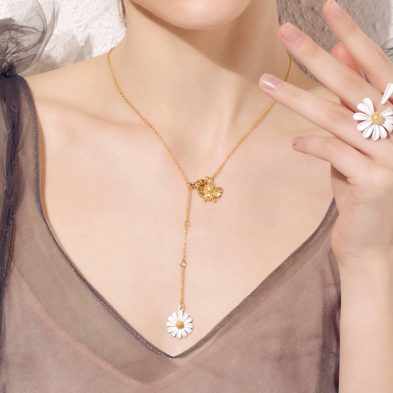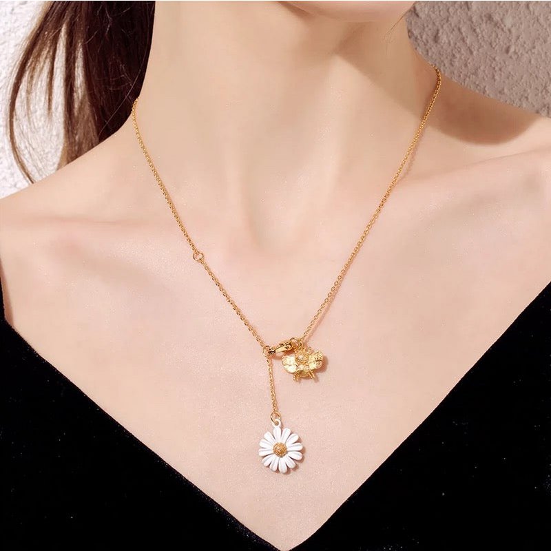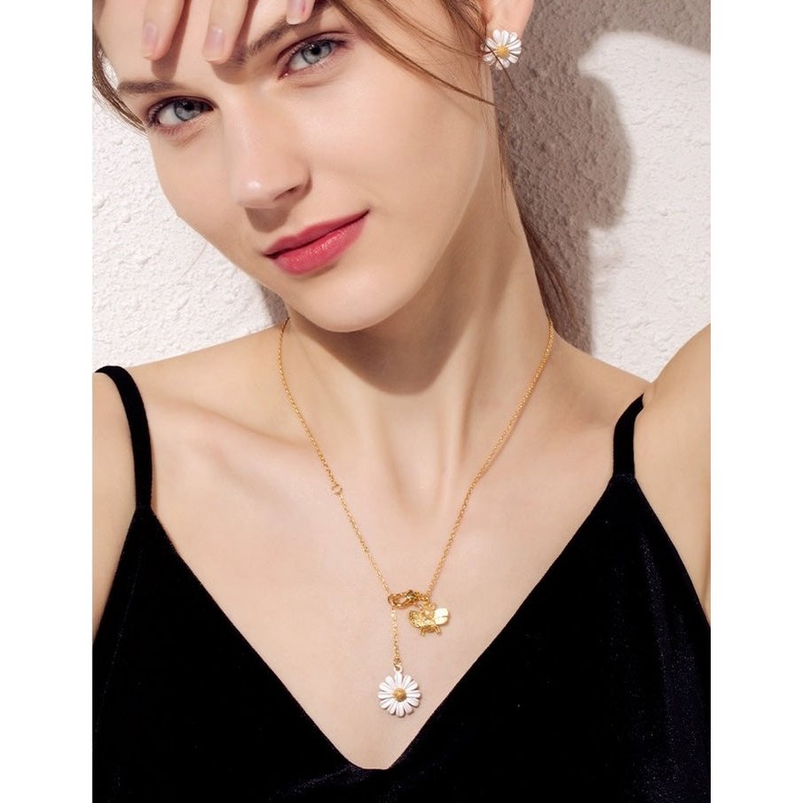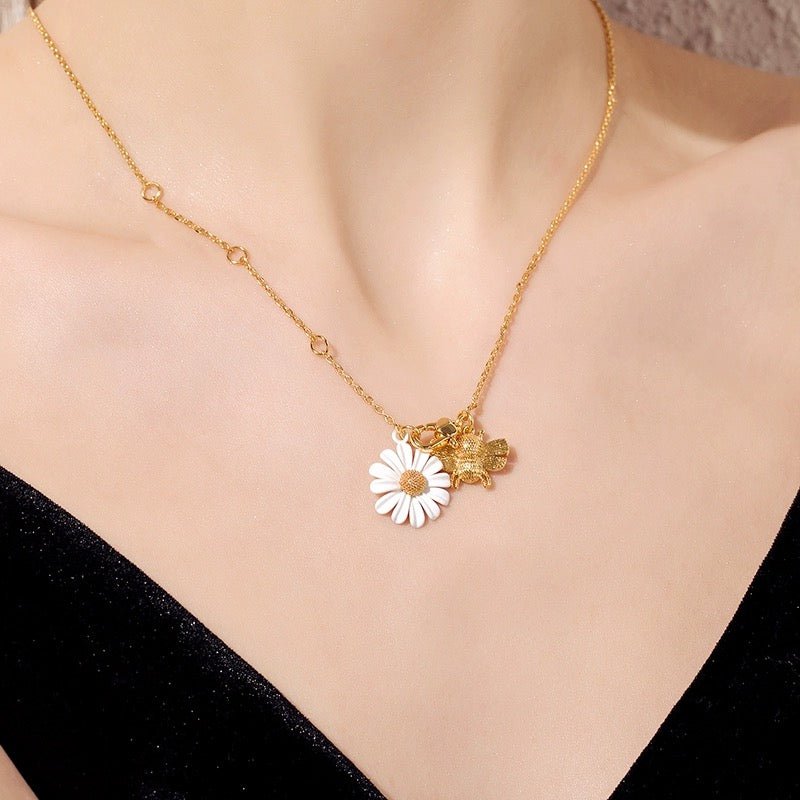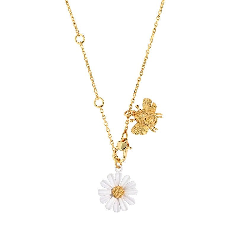 Deze ketting heeft een schattig madeliefjebloemmotief versierd met een levendige bijenbedel, die doet denken aan klassieke vintage stijlen. De ingewikkelde details en de witte emaille afwerking op de bloem voegen een vleugje verfijning toe aan het stuk. Deze ketting is gemaakt van messing en afgewerkt met een laag goud en straalt luxe en duurzaamheid uit. De verstelbare lengte maakt verschillende stylingopties mogelijk, waardoor hij veelzijdig is voor elke gelegenheid. Deze ketting is het perfecte cadeau voor haar, of het nu voor een speciale gelegenheid is of gewoon om waardering te tonen.
