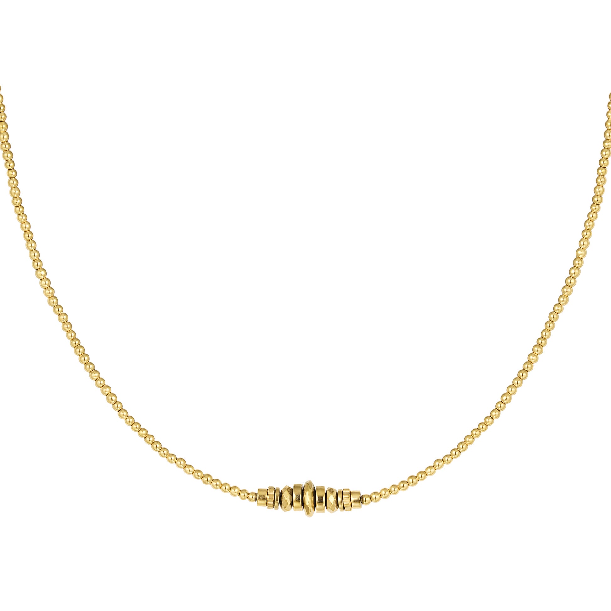Shop dit leuke kettinkje met meerdere verschillende steentjes in het midden voor een stoere maar elegante look. De ketting is in de kleur goud en is gemaakt van hematiet in combinatie met stainless steel. De ketting is voorzien van een verstelbare sluiting en daardoor te dragen vanaf 39 tot en met 44 cm. Het kettinkje is voorzien van een Yehwang logo.