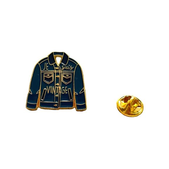 Illustratie van Madame la Mouette, speld gepresenteerd op een mooi aquarelkarton (gemaakt van gerecycled papier) dat een spijkerjasje voorstelt - willekeurige kleur cf. foto.