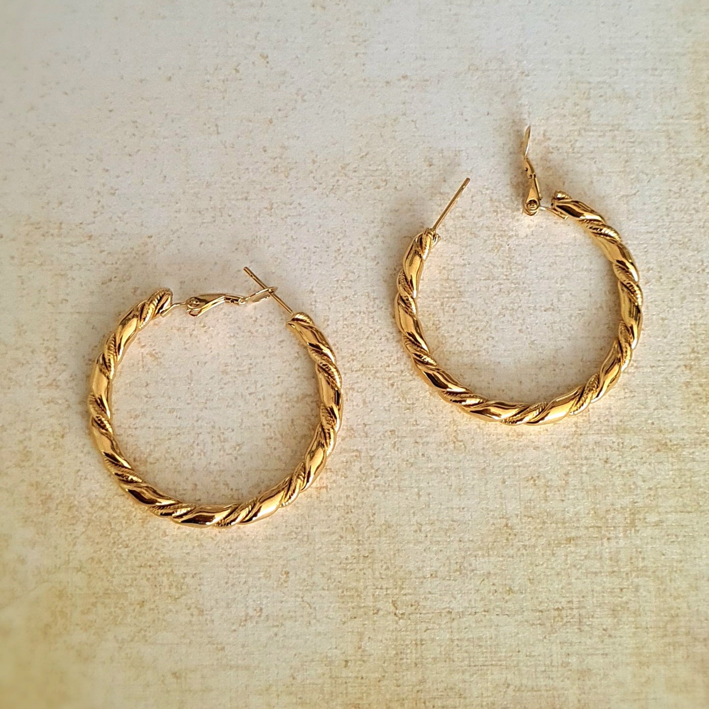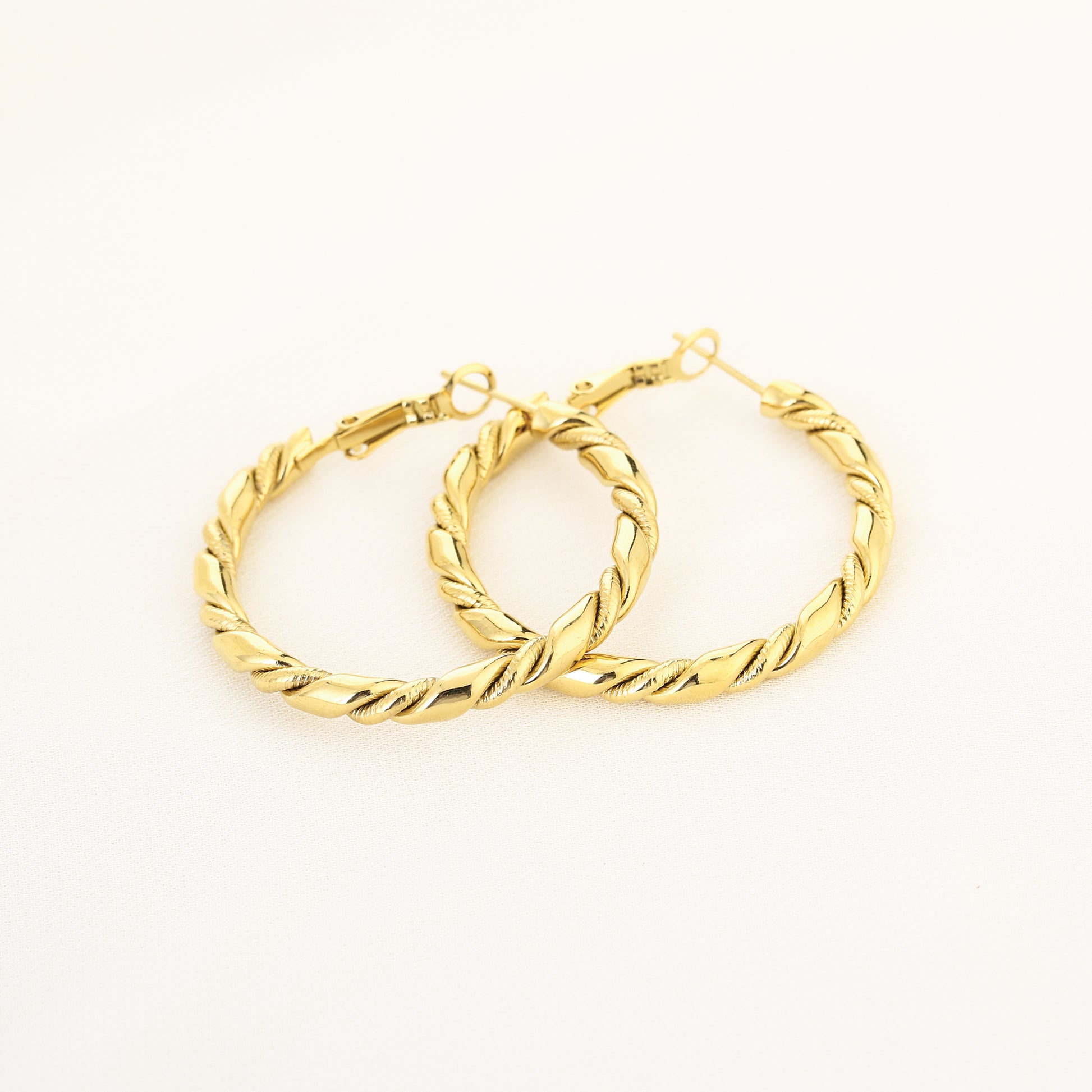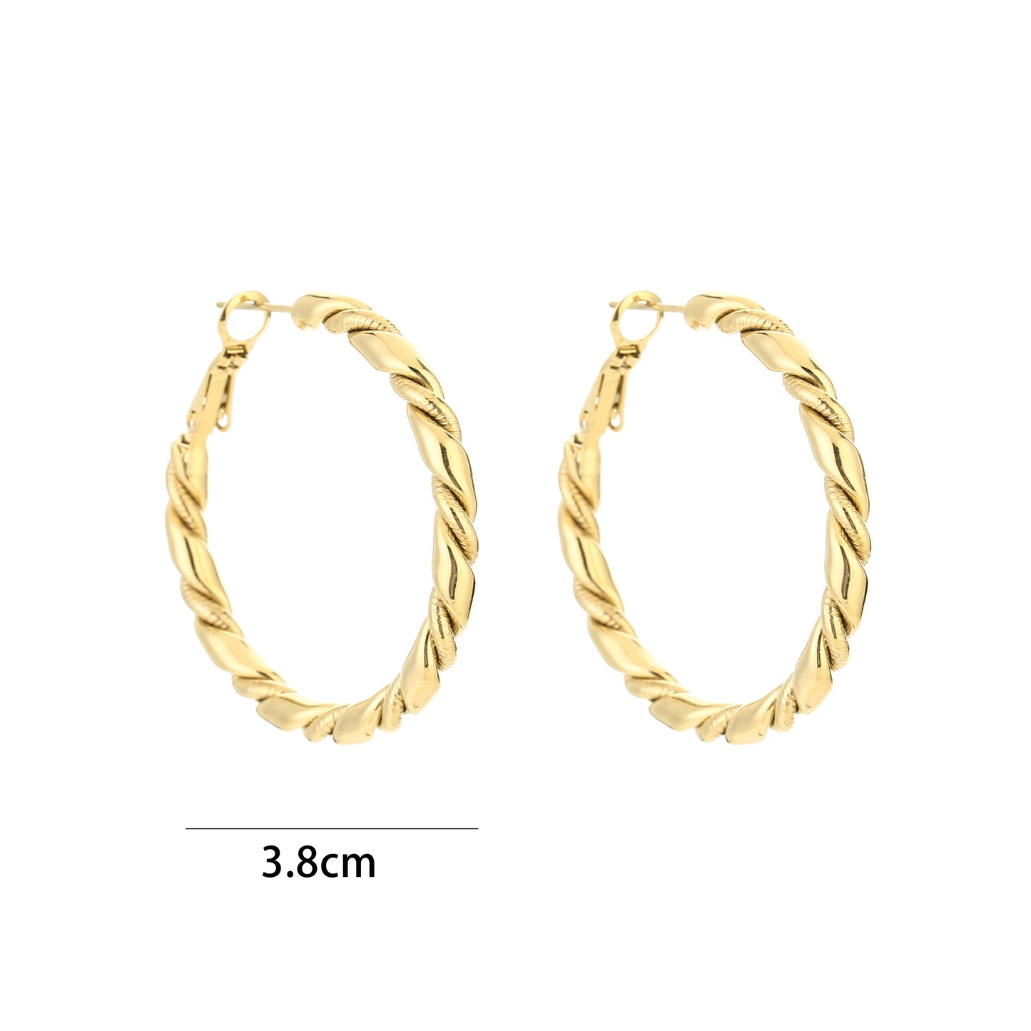 Michelle Statement Gold oorringen hebben een krachtige uitstraling, voor de krachtige vrouw of voor de vrouw die zichzelf wat krachtiger neer wilt zetten. Maar ook als je helemaal niet zoveel met krachtigheid hebt, kunnen deze oorbellen je prachtig staan. Door het materiaalgebruik kunnen deze oorbellen wel tegen een stootje -of een spatje water, ze verkleuren niet. Wees wel voorzichtig met zwemmen in chloorwater zoals in een zwembad, zelfs het stevigste staaltje kan hierdoor wat doffer worden. Deze oorbellen hebben een afmeting van 3,8 centimeter, ze zijn 0,5 centimeter breed.